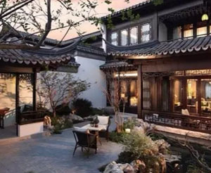 江南風(fēng)韻中式庭院的筒瓦與小青瓦。中式庭院,以江南園林建筑為原型,以明清古建形態(tài)為基礎(chǔ),青磚黛瓦、白墻漏窗、飛檐掛落等在細(xì)節(jié)上通過化繁為簡的處理手法,把江南園林里“水、石、亭、橋、廊、漏窗”這一整套園林系統(tǒng)全部進(jìn)行了重塑。既有詩情畫意之幽,